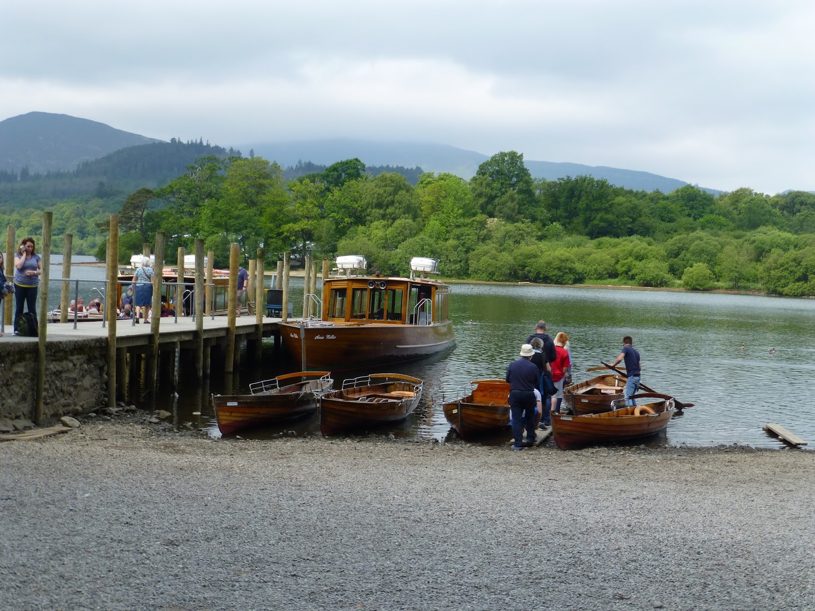 We got up, had a lovely breakfast, and went into town for the Saturday market. Keswick’s market is about twice the size of Knaresborough’s. There were lots of things to choose from. I got myself some Keswick dish towels and a dachshund purse for my friend Sarah. After the shopping was done, Sharon and I made it down to the boat launch to take a cruise of Derwentwater.