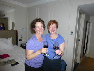The plan that evening was to meet up with Rose Mary Griffith, a travel blogger I’d met online, and her “seester” Jackie.  They nearly called it off due to extreme exhaustion (they had both been in the UK a couple of weeks hiking and were about to leave for home the next day).  Luckily, they had just enough juice to have us up for wine and sweets at their hotel near Green Park. (By the way, they didn’t recommend the hotel.)