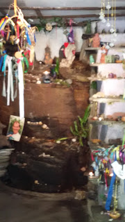 I drove the car to the car park just outside the woods to St. Nectan’s Glen. It’s a lovely walk through the forest which begins at St. Piran’s Well, through a faerie wood bounded by a babbling brook, and ending at a café run by (what appear to be) Wiccans. The Wiccans are very sweet (one gave me a wildflower bouquet), and the food is good. There is an alcove dedicated to the memory of loved ones who have passed away where you can leave pictures and mementos or light a candle in their memory.
